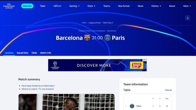 UEFA的官方网站标志着10月1日在每月体育场对巴黎圣日耳曼的欧洲冠军联赛的舞台。虽然巴塞罗那俱乐部